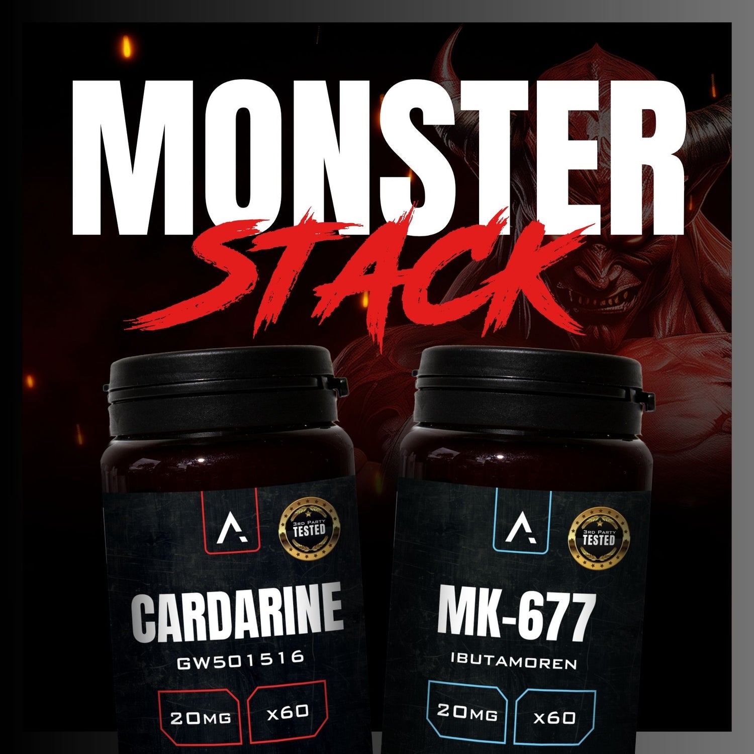 The Monster Stack combines Cardarine and Ibutamoren. The main Benefits of this stack is that it does not require a post cycle therapy after your cycle so its the safest two compounds but also the most potent in terms of gains! So if you're wanting to become a monster then look no further than the Monster Stack.